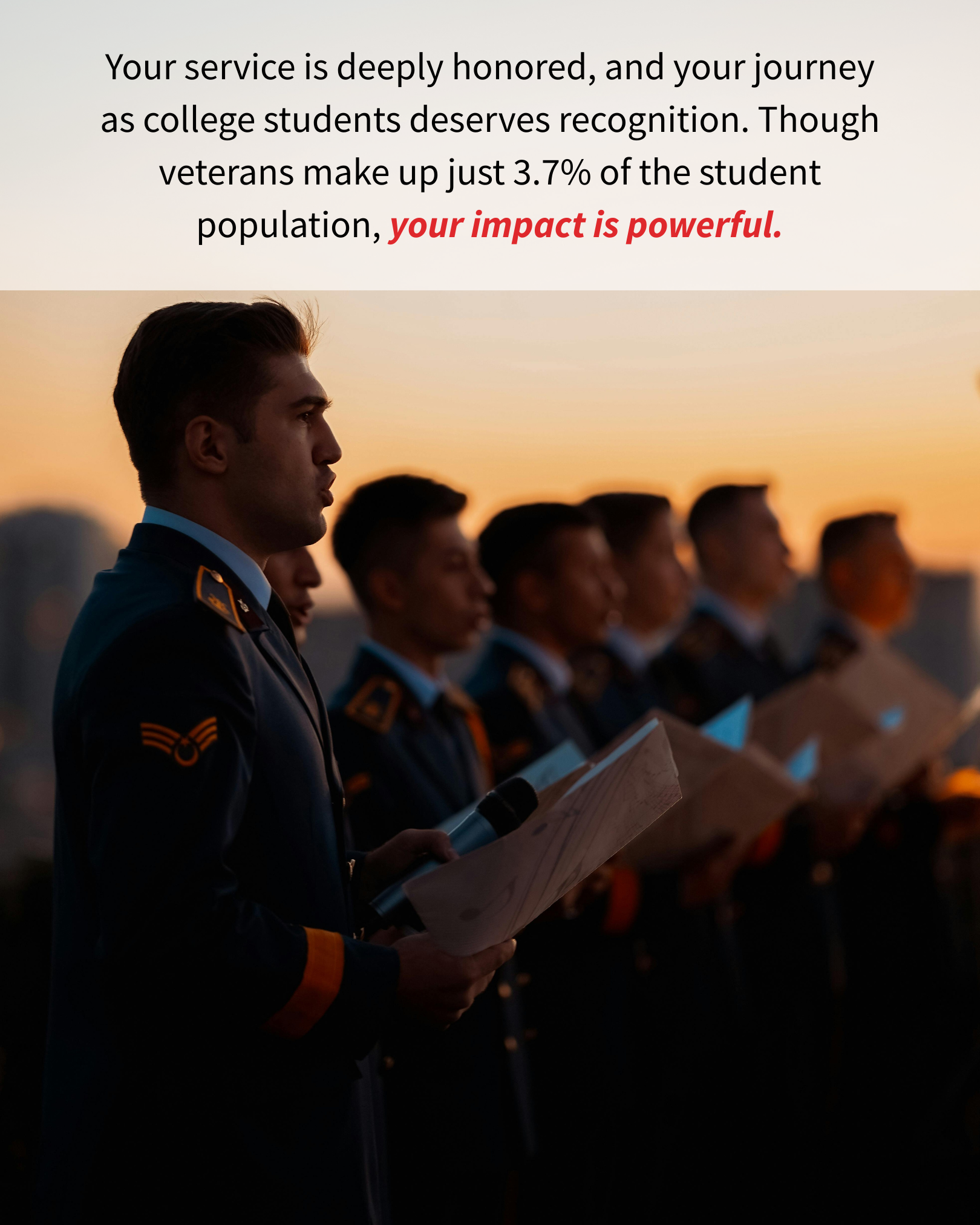 • Best for: Facebook Feed, TikTok standard posts - Reel & Story Asset - Supporting Veteran College Students – Short Version